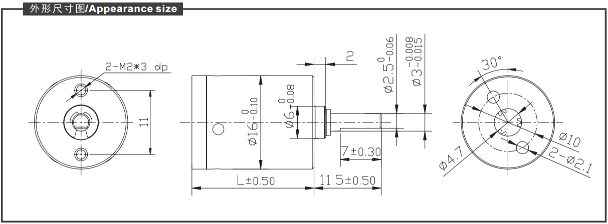 - 1、輸出軸直徑為Φ3.0mm,長度可根據(jù)客戶要求定制
