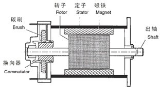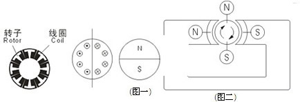 所以電機(jī)由固定的永久磁鐵(定子)一個(gè)轉(zhuǎn)動(dòng)的磁鐵(轉(zhuǎn)子)和金屬外殼組成,形成電機(jī)體。(圖一) 根據(jù)異極相吸,(圖二) 同極相斥的原理,扭矩作用到轉(zhuǎn)子上使其轉(zhuǎn)動(dòng)。當(dāng)轉(zhuǎn)子磁極的軸向與定子磁極的軸向垂直正交時(shí),扭矩最大,一旦轉(zhuǎn)子開始轉(zhuǎn)動(dòng),固定碳刷輪流與換向器保持接觸或中斷接觸。轉(zhuǎn)子線圈按轉(zhuǎn)子轉(zhuǎn)動(dòng)的方式通電和斷電,轉(zhuǎn)子新產(chǎn)生的磁極的軸向,總是和定子磁極的軸向垂直正交,因?yàn)檫@是由換向器決定的。無(wú)論轉(zhuǎn)子在什么位置,都按固定方式運(yùn)轉(zhuǎn)。通過(guò)增加換向器的數(shù)目來(lái)減少合成扭矩的脈動(dòng),可使轉(zhuǎn)子更加平滑地轉(zhuǎn)動(dòng)。反接電機(jī)的電源,轉(zhuǎn)子線圈中電流產(chǎn)生的磁極N極和S極都將反轉(zhuǎn),作用于轉(zhuǎn)子上的扭矩也反向,從而電機(jī)改變轉(zhuǎn)動(dòng)方向,根據(jù)其固有特性,DC電機(jī)是一種可反向轉(zhuǎn)動(dòng)的電機(jī)。