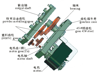 根據(jù)每檔齒輪受力大小,計算出齒輪的模數(shù)、厚度和材料,并經(jīng)過壽命測試,這樣才能做出更低噪音并足夠壽命的有機結(jié)合。電機有直流電機、無刷直流電機、罩極電機等可組合。